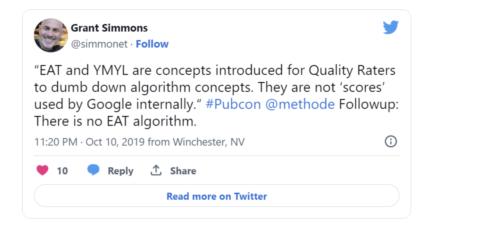 撇开可能不需要的和光顾的道德指导不谈,还值得注意的是,谷歌经常改变他们的评分准则,所以E-A-T标准可能会随着时间的推移而变化和发展。
