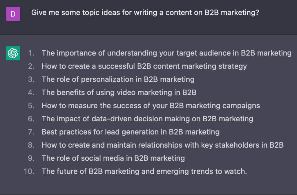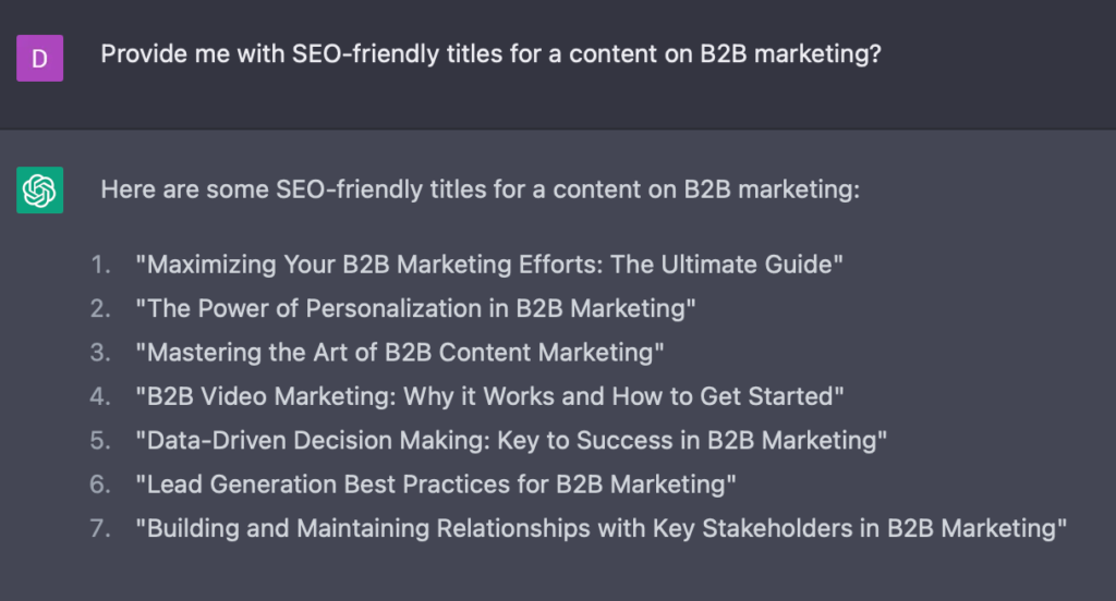 图3. ChatGPT对B2B营销中内容的SEO友好标题建议