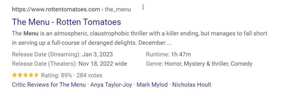 谷歌的研究支持了这一点。在一项研究中,谷歌发现Rotten Tomatoes在其超过10万个网页中添加了模式标记,与没有使用该标记的网页相比,点击率增加了25%: