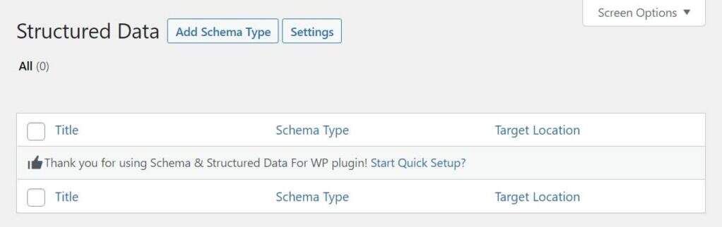 启用该插件后,在WordPress仪表板中进入Structured Data > Schema Types,选择Add Schema Type选项: