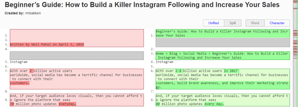 内容优化(图片来源:Diffchecker)