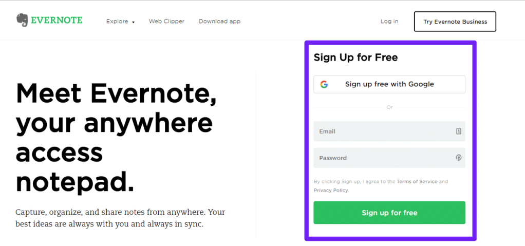 首先,到Evernote去,用你的电子邮件或谷歌账户注册一个账户。