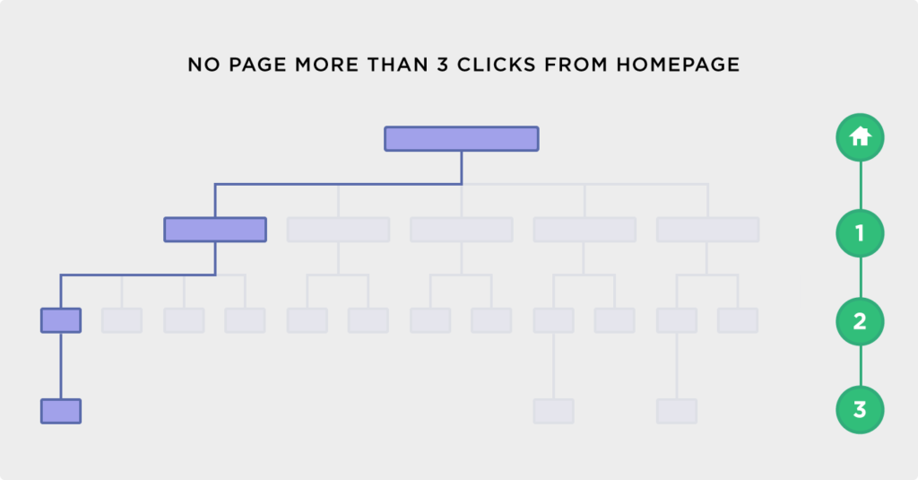 从您的主页转到您网站上的任何页面的点击次数不应超过3次。