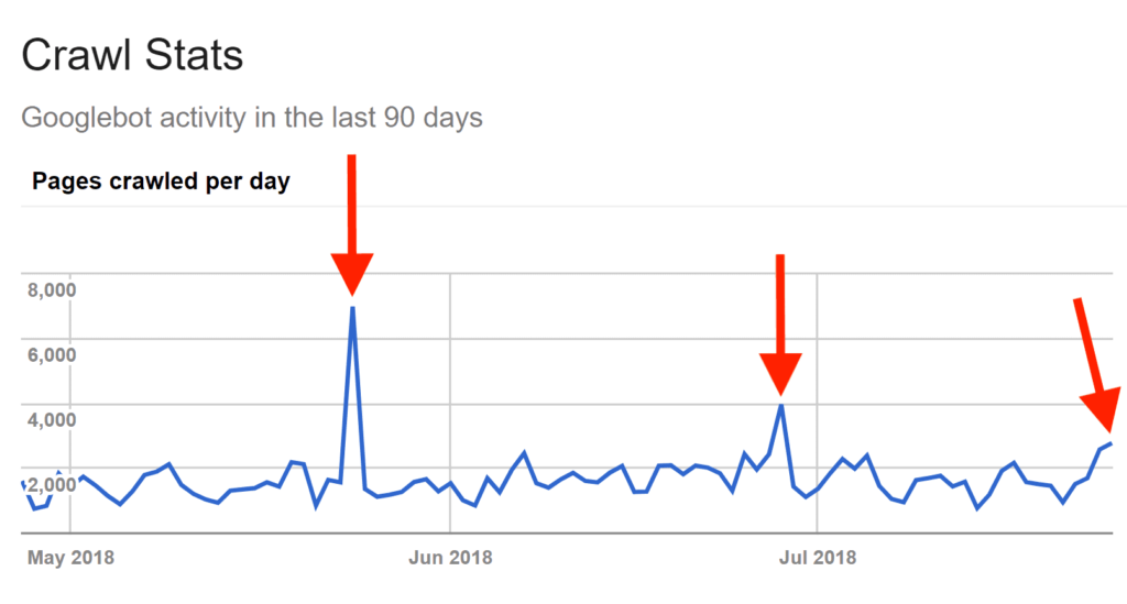 例如,每当发布新内容时,请查看“每天抓取的页面数”的峰值: