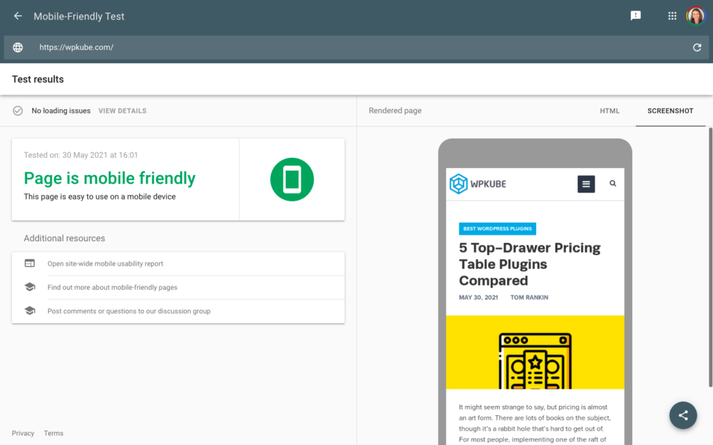 …您会看到Google是否认为您的网站针对移动设备进行了优化。