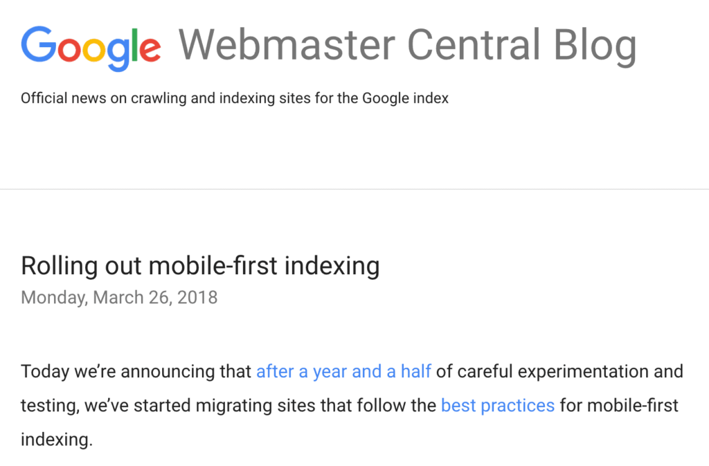 这意味着Google现在使用您网站的移动版本进行移动和桌面搜索。
