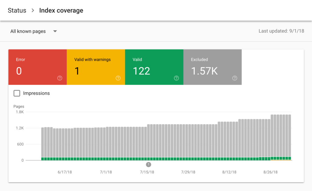 “索引覆盖率”报告向您显示由于某种原因无法索引的页面列表。