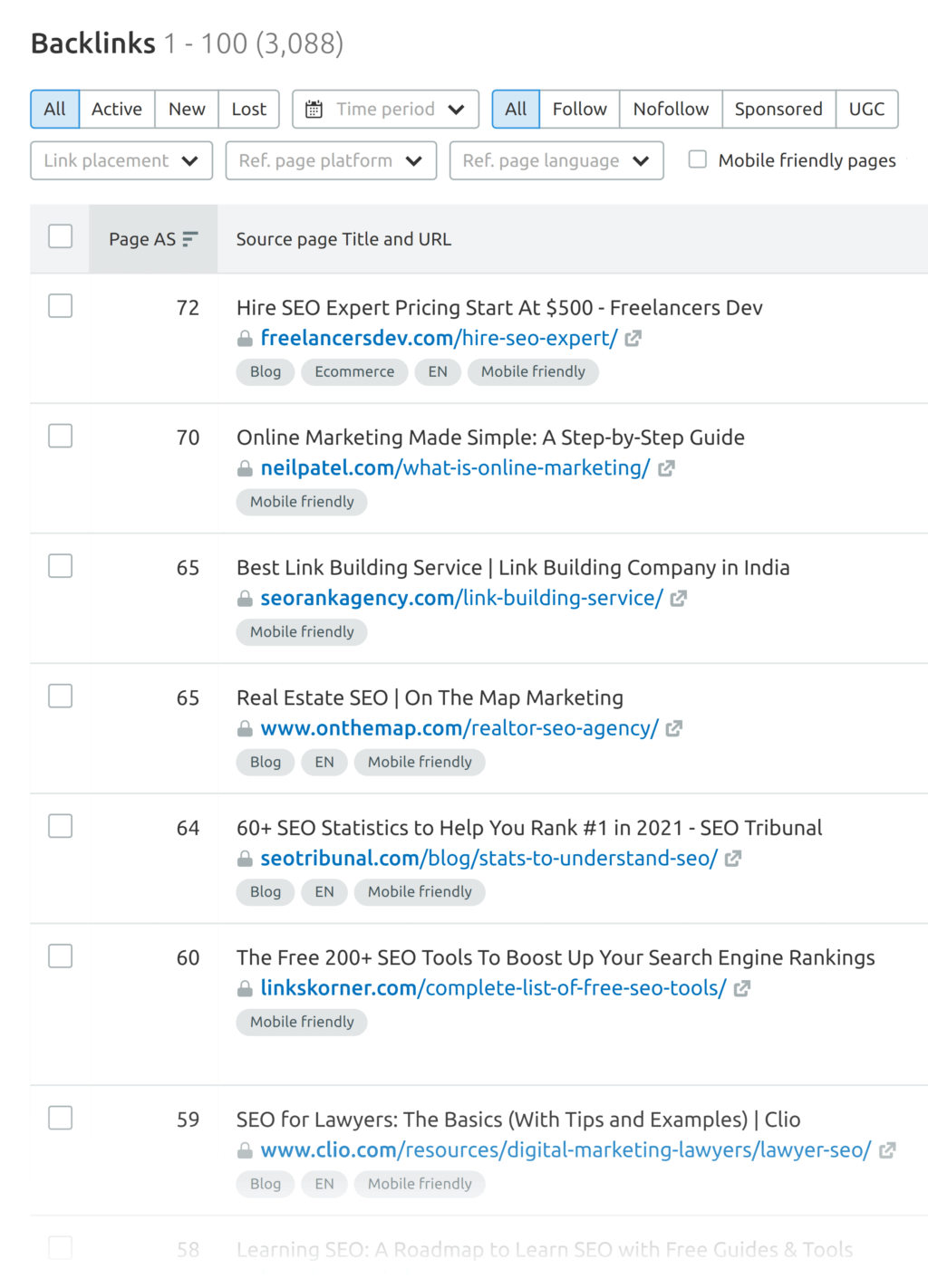 专业提示:您可能会在此报告中找到一些不重要的页面。例如,您可能有很多指向您的隐私政策或联系页面的链接。这通常是因为您从网站的导航或页脚链接到这些页面。