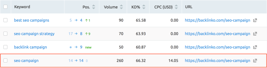 (它徘徊在目标关键字的第10位和第15位之间:“SEO Campaign”。)