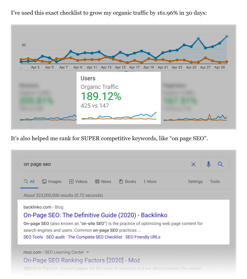 例如,在这个SEO检查清单文章中,使用了大量的图片: