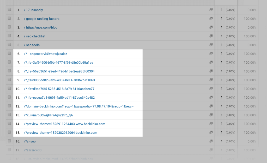 您可能会在此报告中发现一些实际上并不存在的奇怪页面。