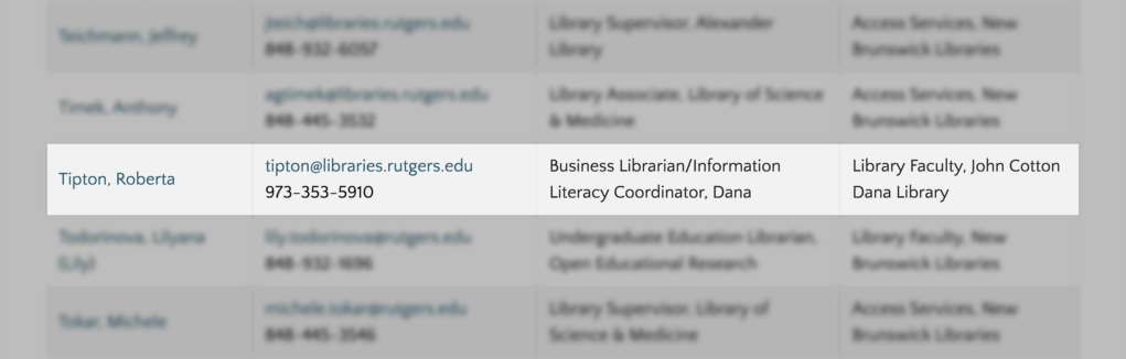 我去了网站的目录页面,找到了那个部门的“商业图书馆员/信息素养协调员”。