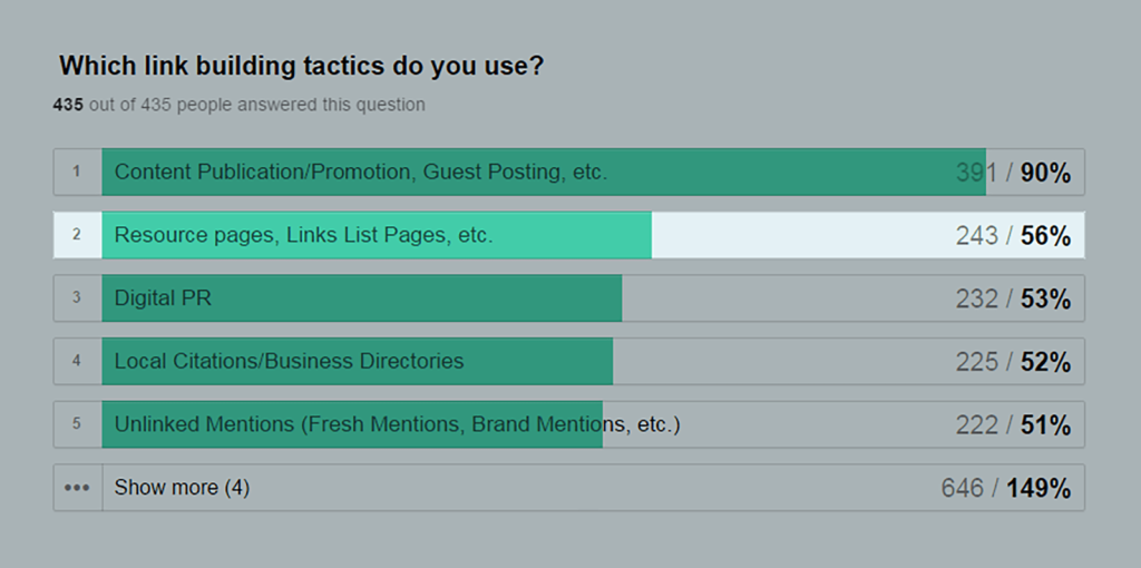 Search Engine Land 发现,从资源页面构建链接是 SEO 专业人士中第二受欢迎的链接构建策略: