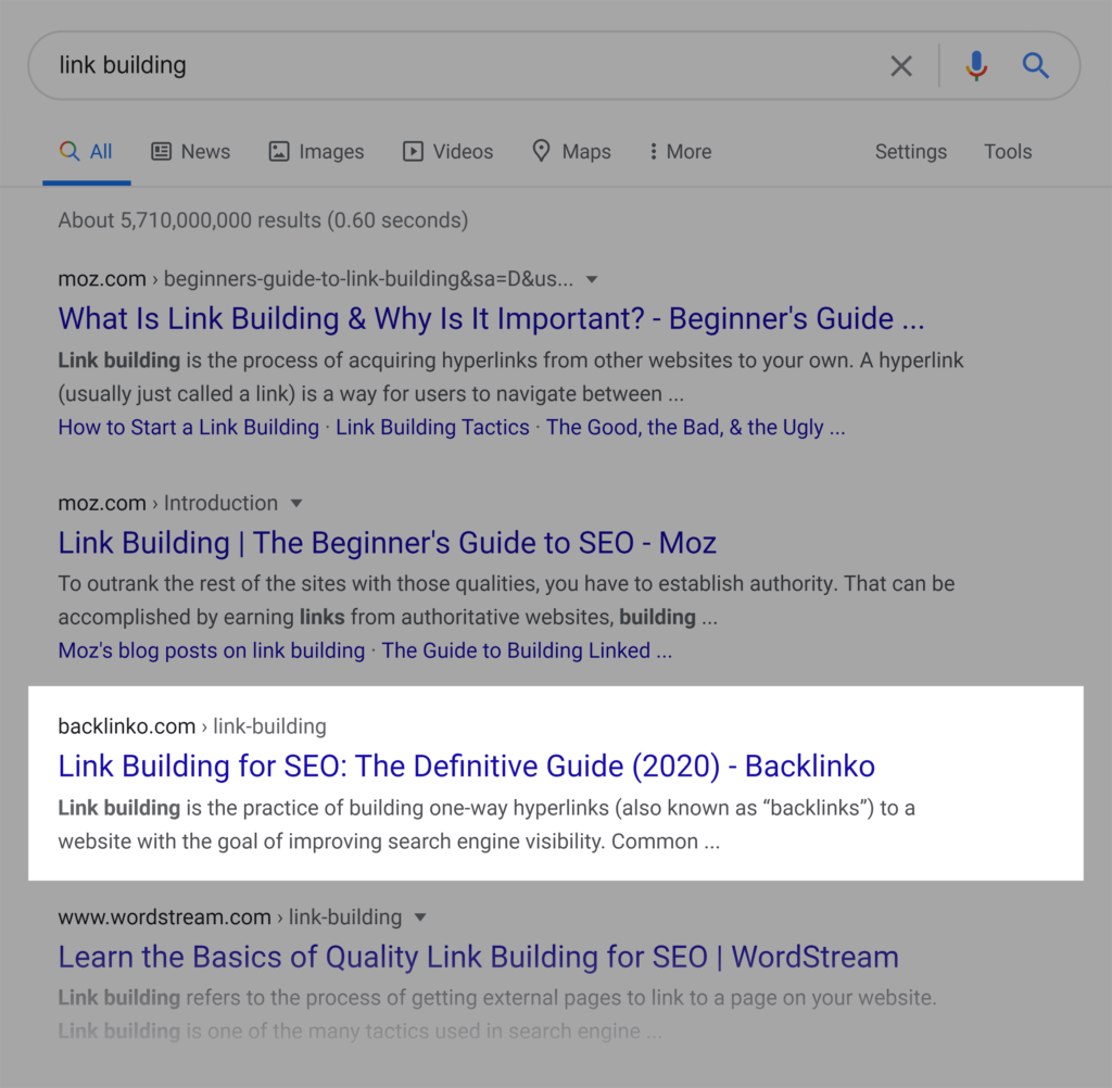 事实上,它目前在关键词“链接建设”方面排名谷歌前三名。