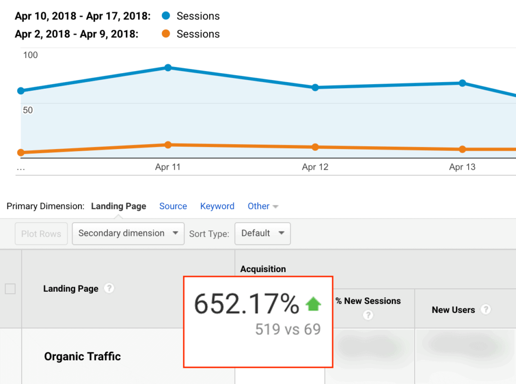 所有这些变化都帮助我的文章终于打开了第一页……这导致了巨大的自然流量增长: