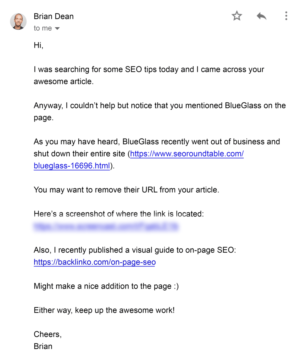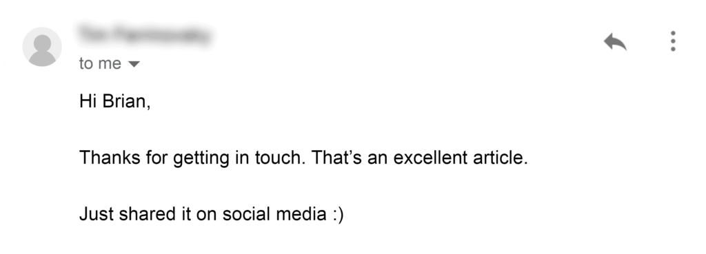 例如,这是一封我发送给营销领域博主的外联电子邮件: