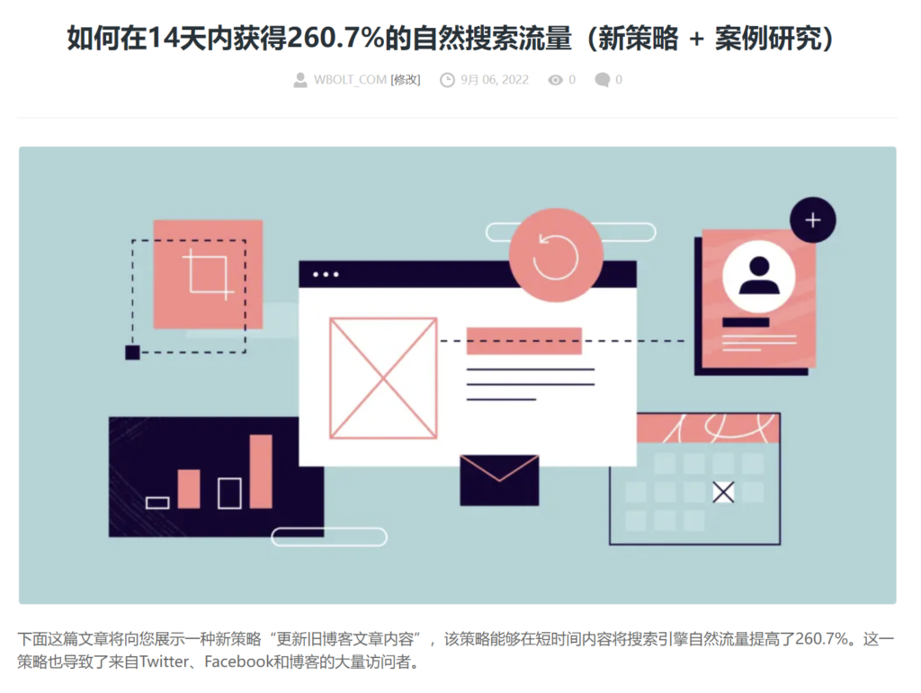 您可能已经阅读过我使用旧文章“翻新”将自然流量提高260.7%的时间:
