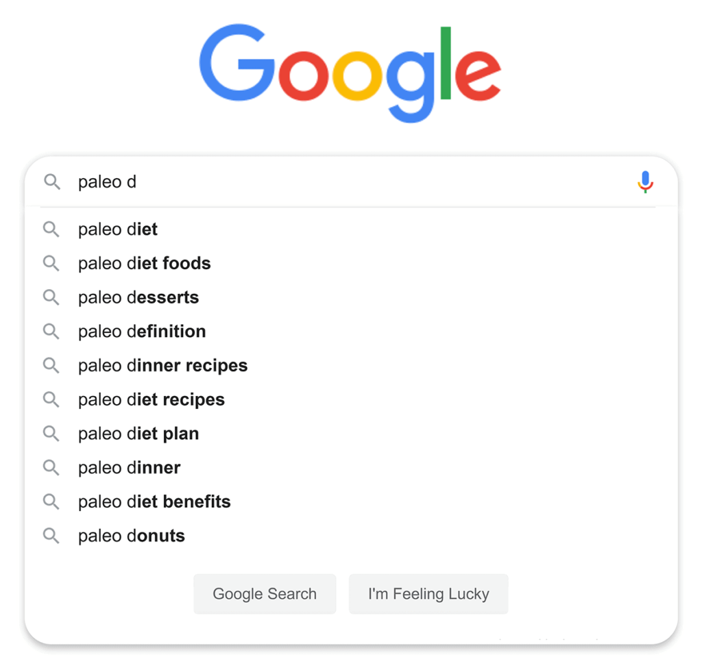 开始在Google的搜索字段中输入关键字,它会填充建议列表:
