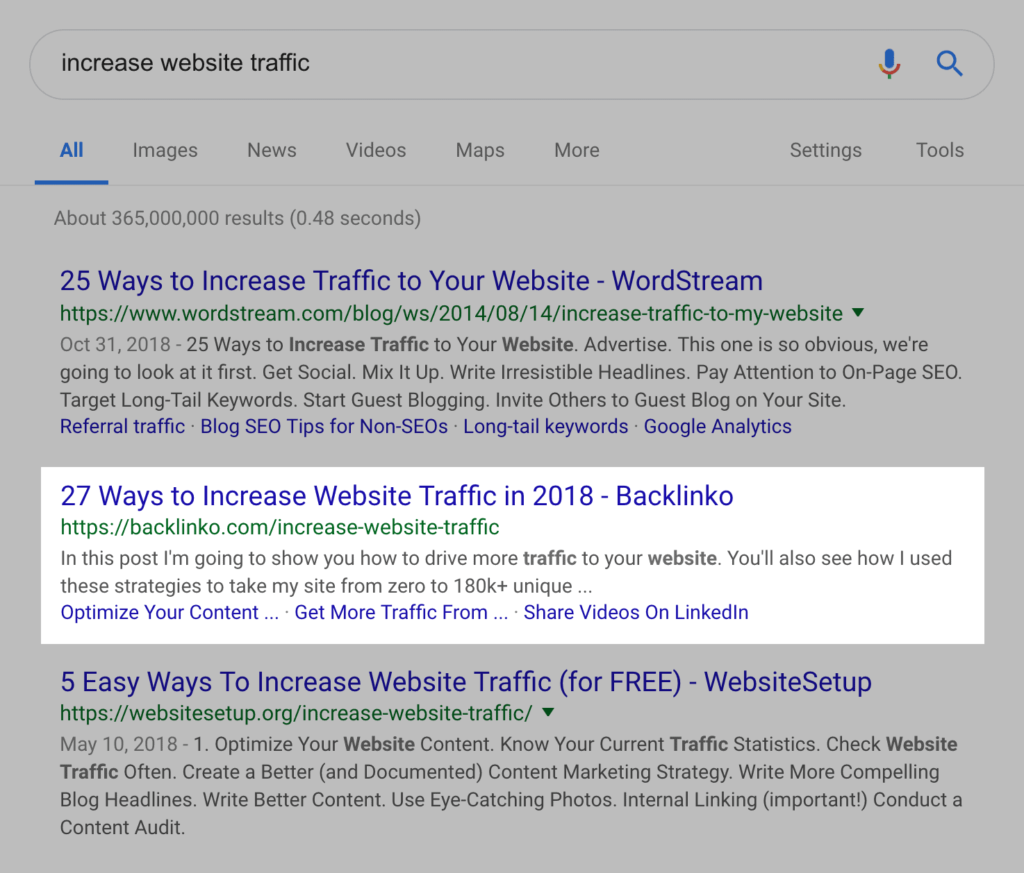 大多数“增加网站流量”的内容排名都列出了一口大小的流量提示。