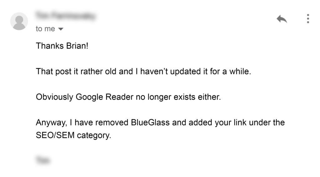 而且因为我在提出任何要求之前就帮助了这个人,所以他们很乐意添加我的链接: