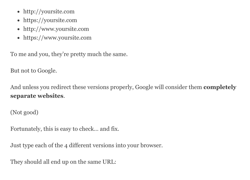 例如,在这篇文章中,我解释了您网站的所有4个版本应该如何重定向到同一个URL: