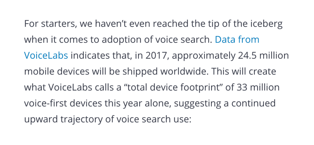 当人们撰写有关语音搜索的文章时,他们会链接到具有统计数据和数据的内容: