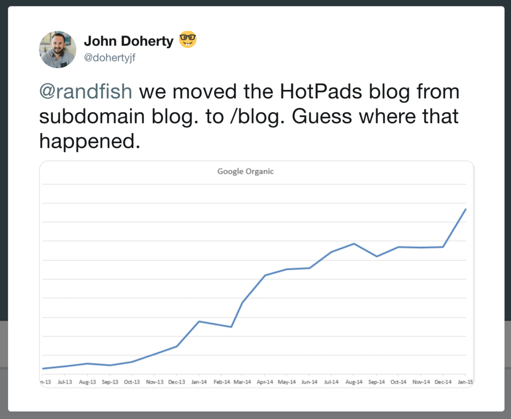 搜索引擎优化和谷歌争夺谷歌如何对待子域与子目录:关于子域与子文件夹的有趣辩论。我在本指南中推荐子文件夹(根据我的个人经验)。但谷歌的看法是他们受到同样的对待。如果您正在考虑更换,值得一读。