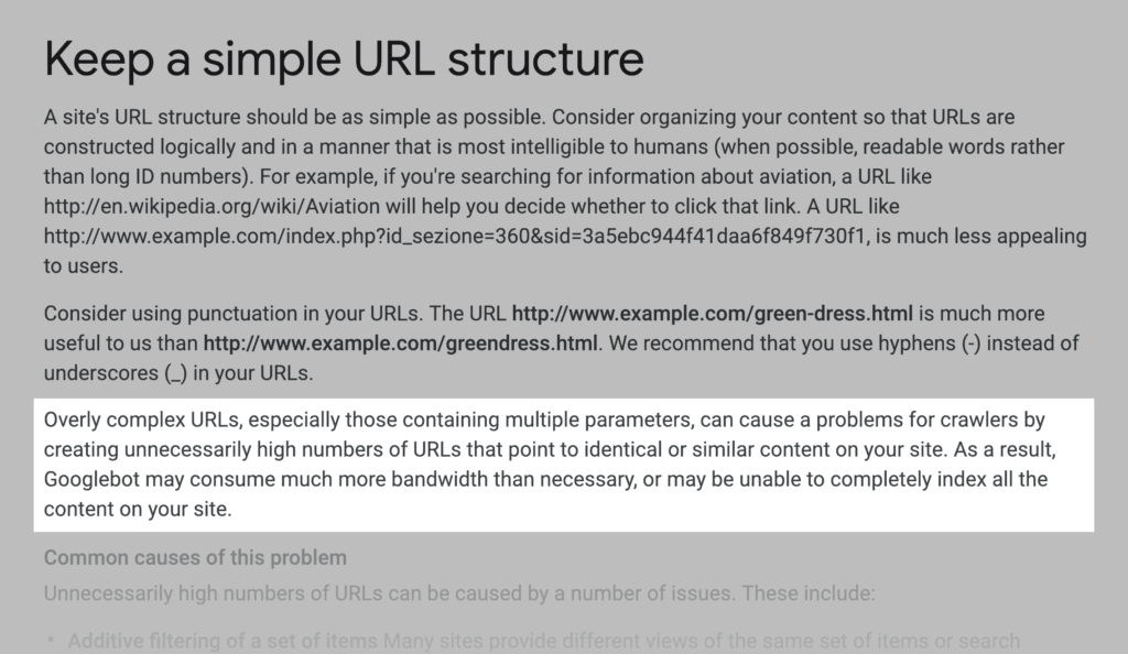 保持简单的URL结构:Google提供的关于URL最佳实践的简短但内容丰富的指南。请注意他们如何不遵循自己的建议