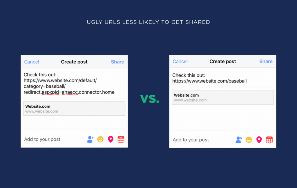 丑陋的URL不太可能在社交媒体和在线社区(如Reddit)上被点击和分享。