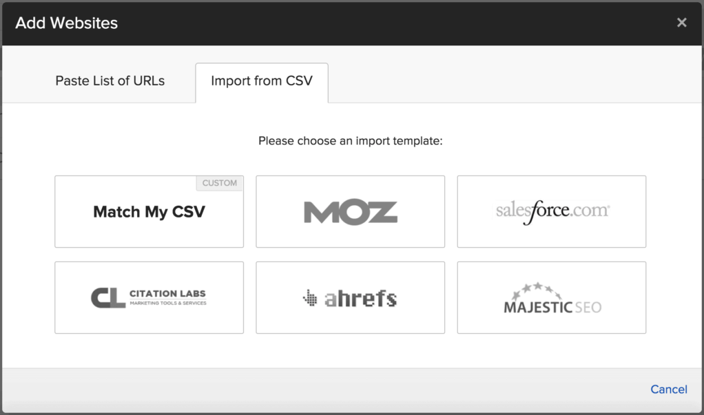 …或上传您想要联系的利基网站列表: