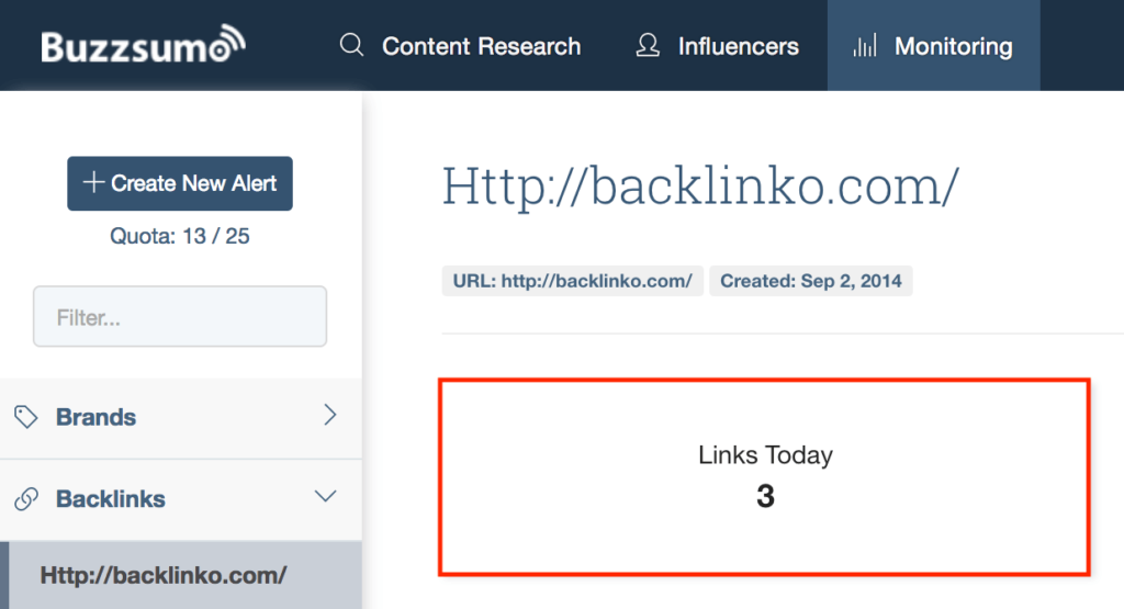 您还可以使用BuzzSumo查找指向您网站的新链接: