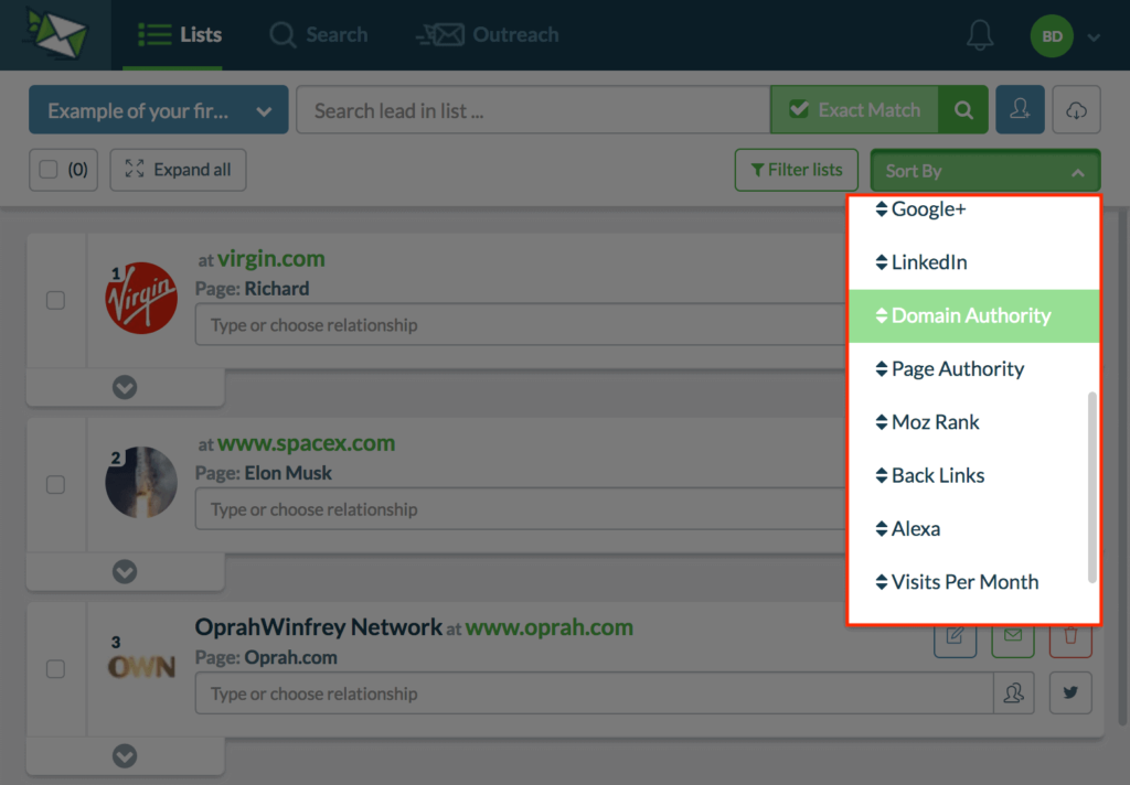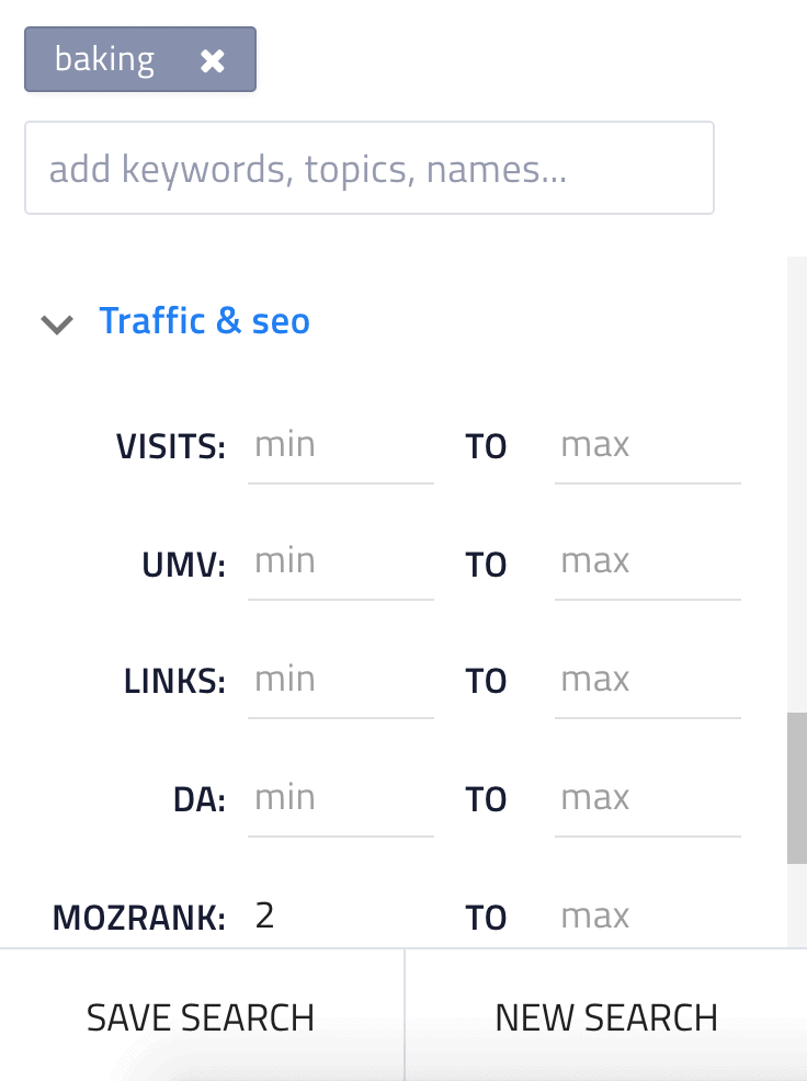 您可以根据域权限、社交媒体关注者、受众规模……对博主进行排序和过滤……等等。
