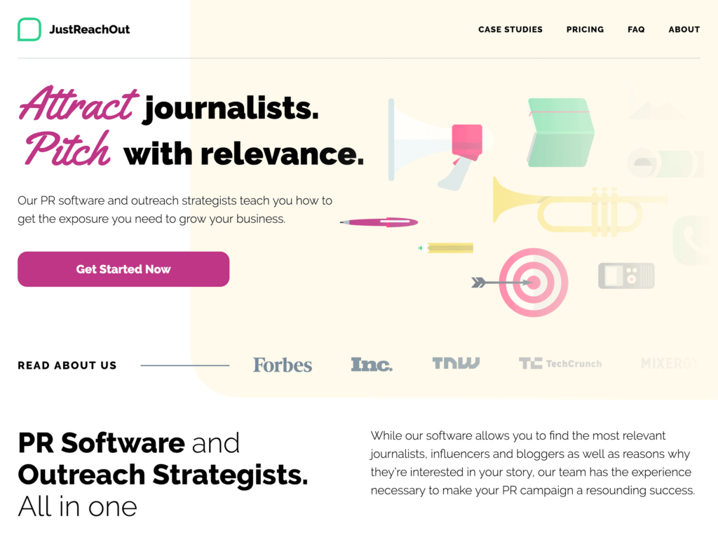 如果您想在媒体上获得链接和提及,JustReachOut可以提供帮助。使用起来非常简单。考虑到它有多少很酷的功能,它相对便宜。