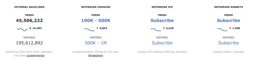 - “我能看到多少个链接?” – Moz、Ahrefs和Majestic等反向链接分析工具为您提供最具竞争力的链接数据。其他的可能更便宜……但你得到你所支付的。