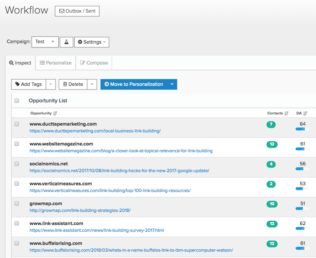我喜欢Pitchbox的地方在于它的工作流程是内置的。所以一旦你开始一个活动,它就会引导你完成所有步骤(从寻找高质量的潜在客户到获取联系信息,再到实际发送外联电子邮件)。