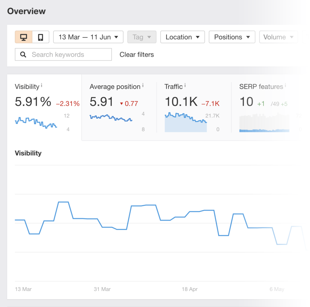 首先,您可以使用排名跟踪工具。您输入一组对您的SEO活动很重要的关键字。