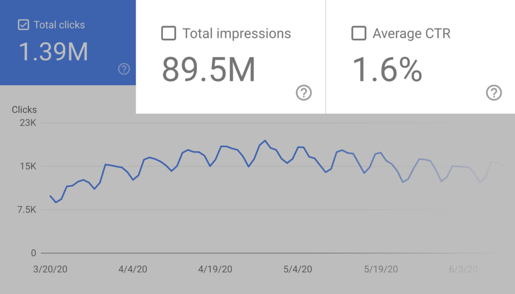 但这些并不像总点击次数那么重要。事实上,我会说“总点击次数”应该是您的SEO北极星。如果这个数字在上升,那么您的SEO工作正在发挥作用。