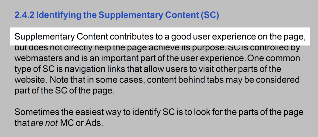 事实上,谷歌质量指南文件告诉审阅者考虑具有“补充内容”(以计算器、下载和图表的形式)的页面比纯文本页面质量更高。