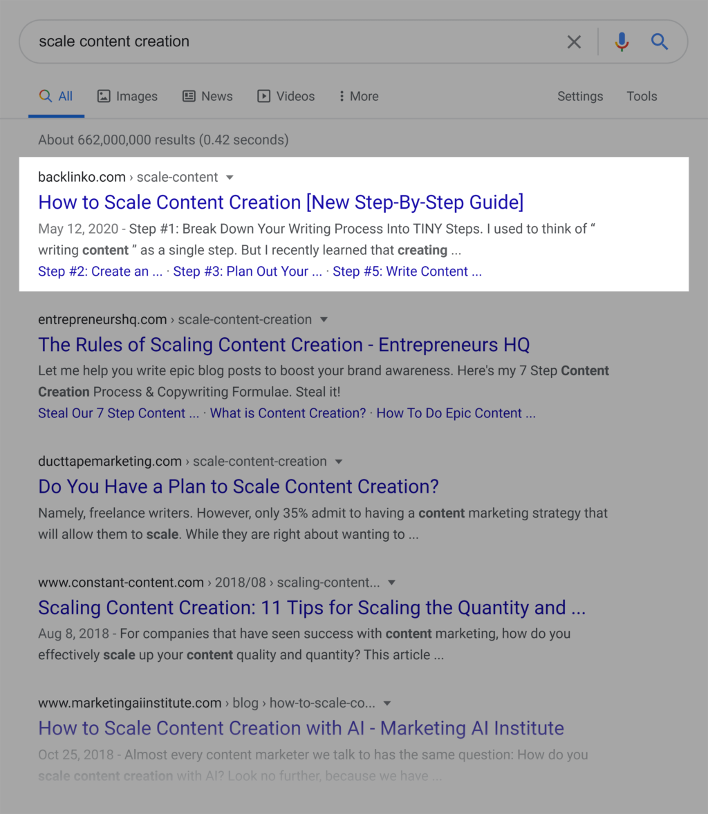 当您扫描结果时,您会看到您最喜欢的网站排名#4: