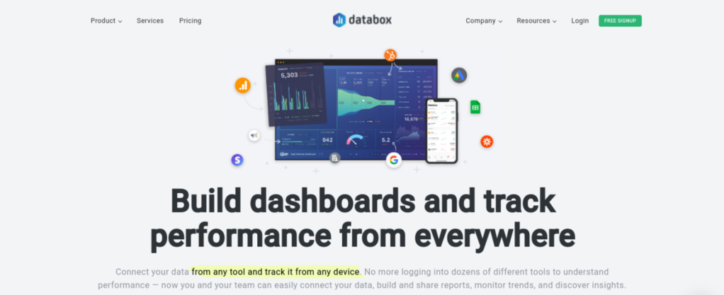 Databox是一个鲜为人知的关键词排名工具,它仍然是一个强大的选择。这是一个强大的平台,可为项目管理、销售、营销等提供服务。它包括一个自定义SEO仪表盘工具,您可以使用它来查看、分析和报告您网站的性能。