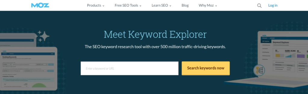 Moz,特别是关键字资源管理器工具,被认为是网站所有者和数字营销人员最好的关键字跟踪工具之一。它使您可以分析特定关键字、发现竞争对手并找到替代关键字选项。