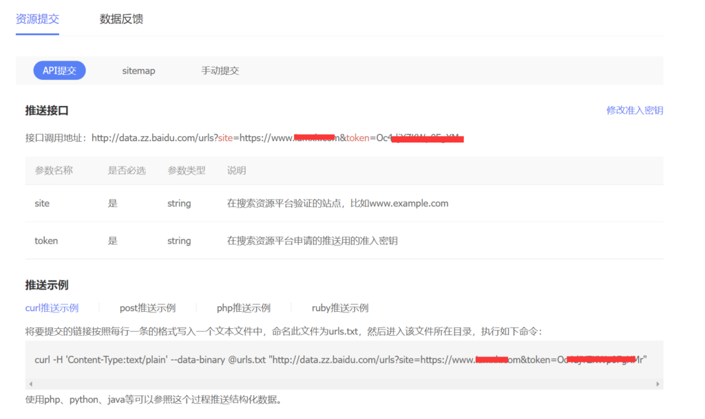 上面红色部分就是百度搜索资源推送API的准入密钥。