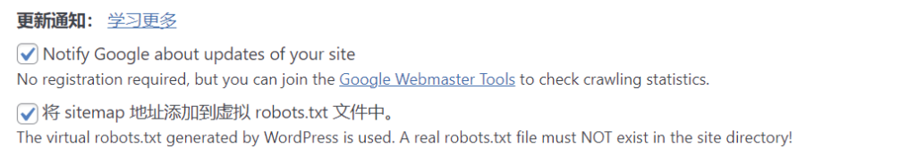 - 第二项检查是让Bing知道您何时更新网站(注:最新版本已经取消了bing的通知选项,查看如何提交sitemap至bing)。