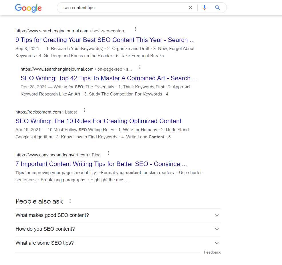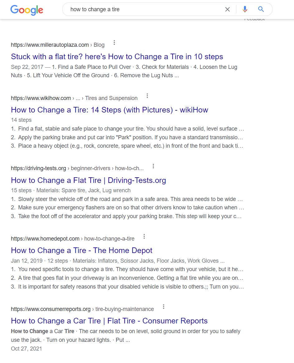 使用搜索引擎时,您不会一一浏览每个结果。统计数据表明,除非您进行非常深入的研究,否则您可能会坚持前五个结果: