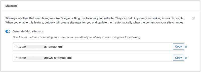 关于Jetpack是否会减慢您的网站速度,互联网上有很大的争论。我们已经在许多网站上使用过该插件,坦率地说,没有发现任何与性能相关的具体问题。因此,如果您使用的是 Jetpack,您可以继续使用,以下是您应该在插件设置中激活的与SEO相关的功能。