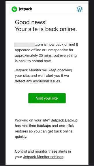 这将持续监控您的网站,并在您的网站出现故障时向您发送电子邮件。当站点启动并再次可访问时,您还将收到另一封电子邮件,其中提及停机时间的总持续时间。