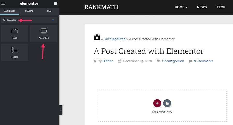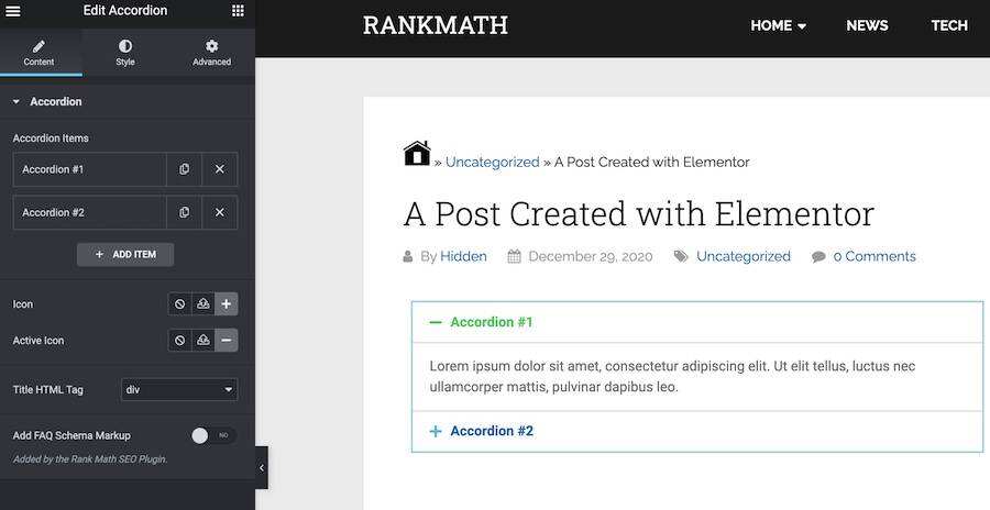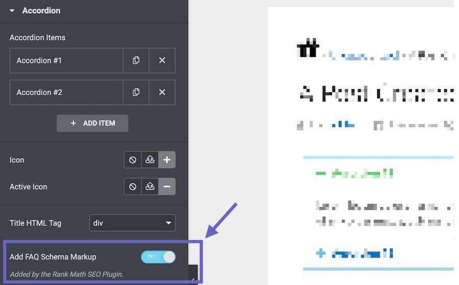 Rank Math为Elementor中的Accordion添加了常见问题解答选项。