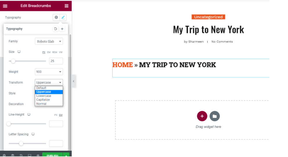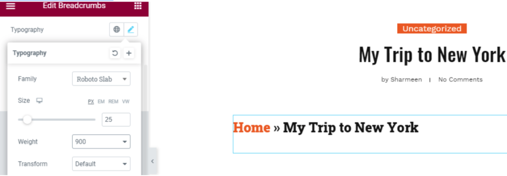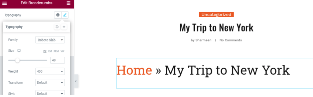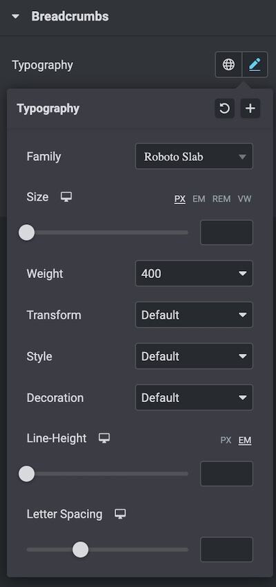 面包屑也有样式选项,您可以在其中更改版式和文本颜色。您还可以更改链接颜色,在正常和悬停链接选项之间进行选择,如下所示。让我们来看看这些样式选项中的每一个。