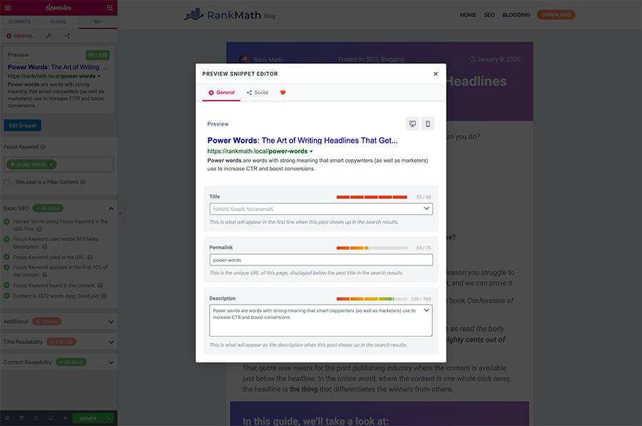 事不宜迟,让我们来看看使用Rank Math和Elementor的样子。