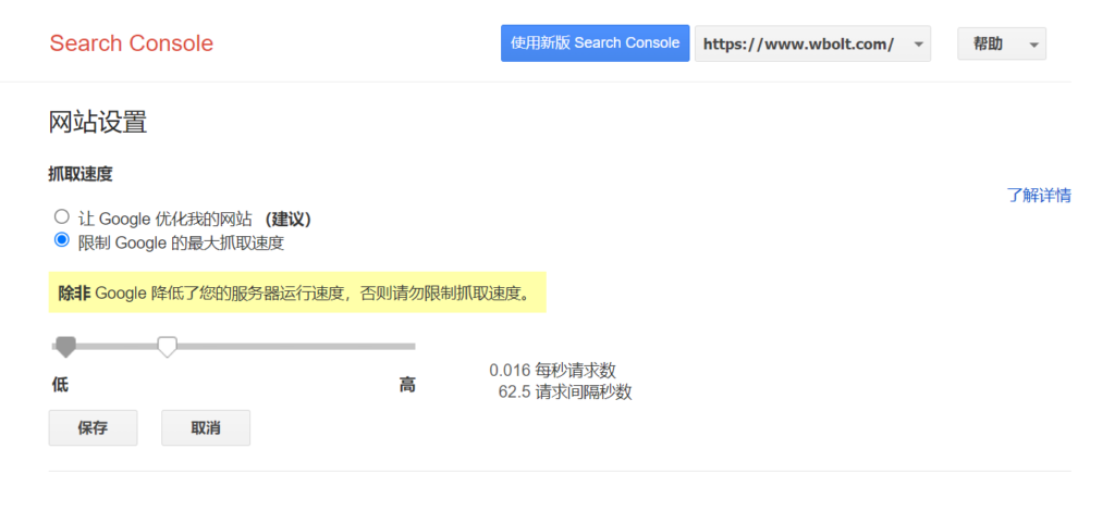 注:除非谷歌爬取导致您的网站性能下降严重,否则完全没必要修改谷歌爬虫的爬取速度,这一块的控制,谷歌做得相当优秀。